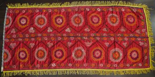Uzbek Vintage Suzani with Silk Embroidery - Golden Fringe