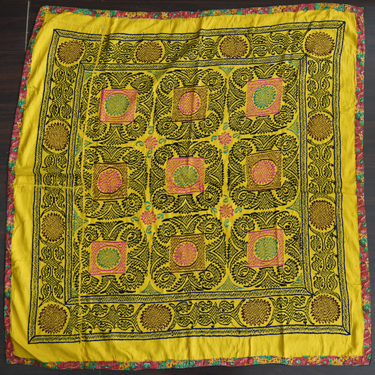 Uzbek Suzani from Bukhara - on a Silk/Satin Ground in Vibrant Yellow