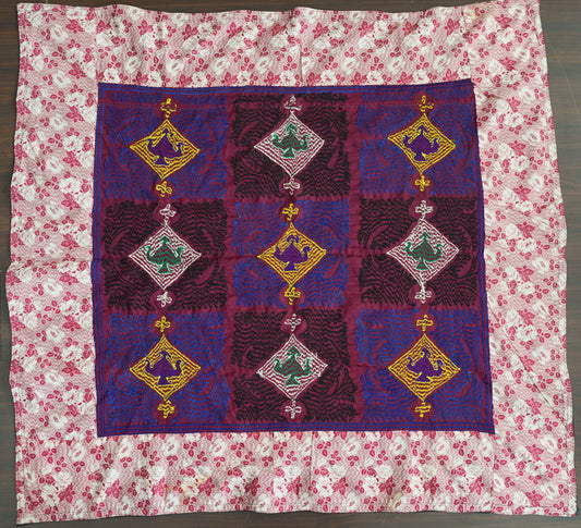 Vintage Uzbek Suzani 'Beshikpush' in Brightly Coloured Tribal Patterns