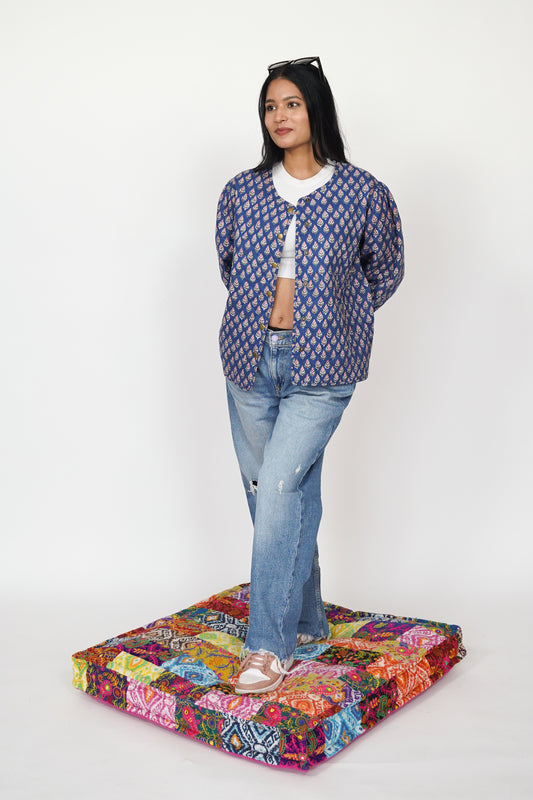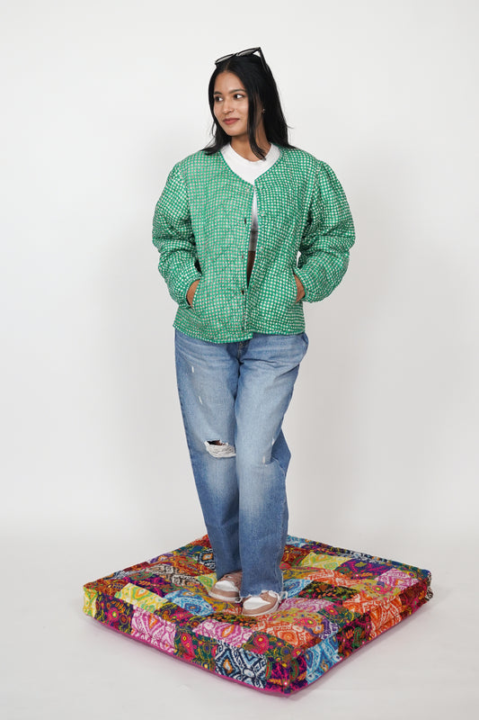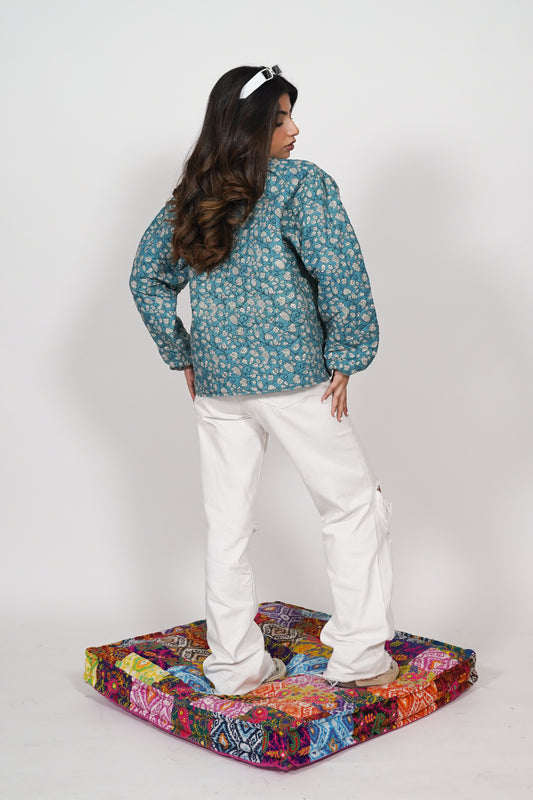 Oversized puffy sleeve quilted jacket - Blue Fern