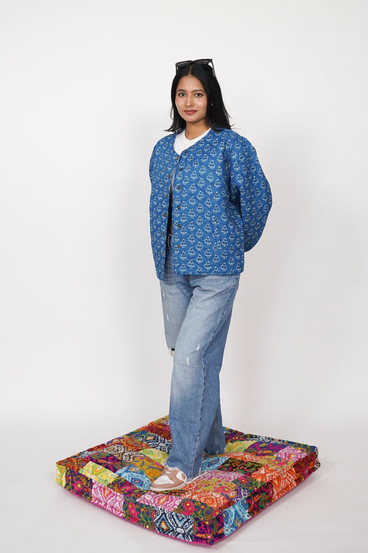 Oversized puffy sleeve quilted jacket - Blue Stem