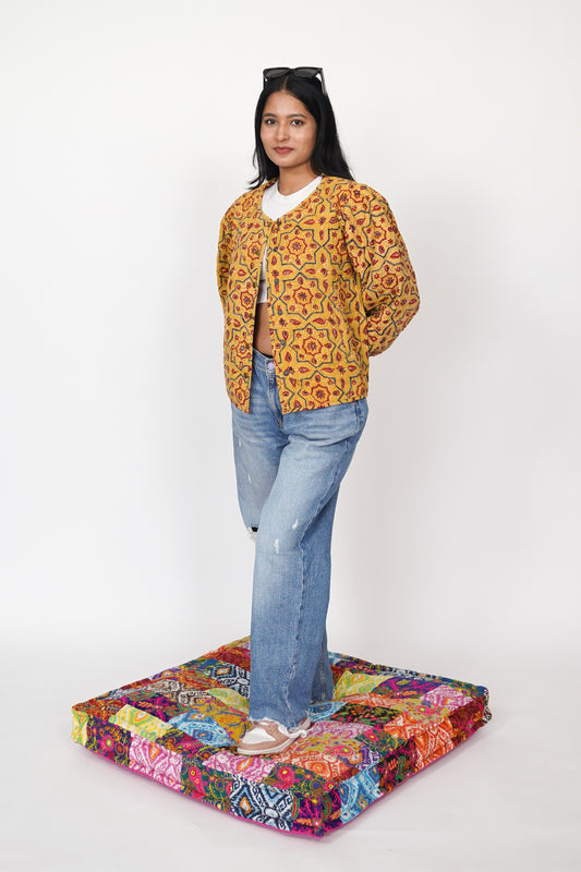 Oversized puffy sleeve quilted jacket - Yellow Maze