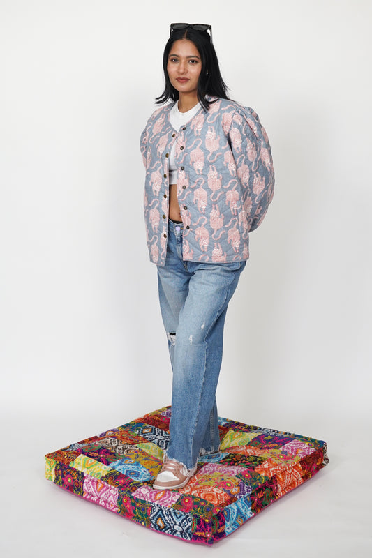 Oversized puffy sleeve quilted jacket - Pink Tiger