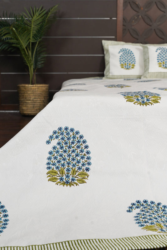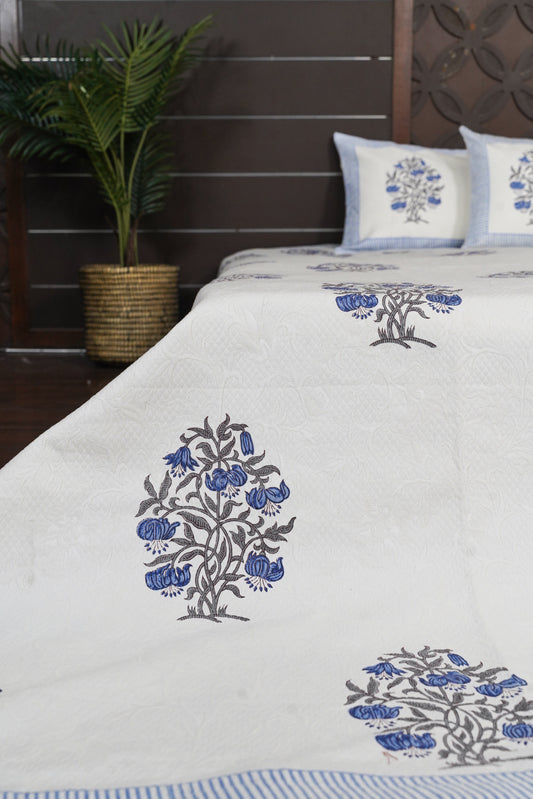 Periyar Cotton Bedspread - Blue Florals