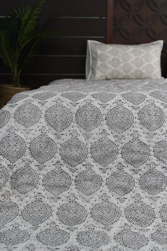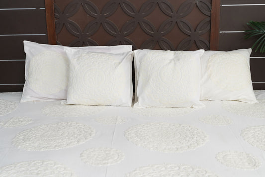 Mandala Suzani Bedcover - White on White