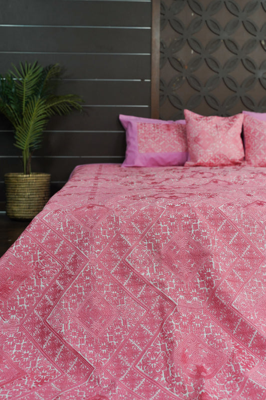 Swati silk embroidery bedcover - Pink