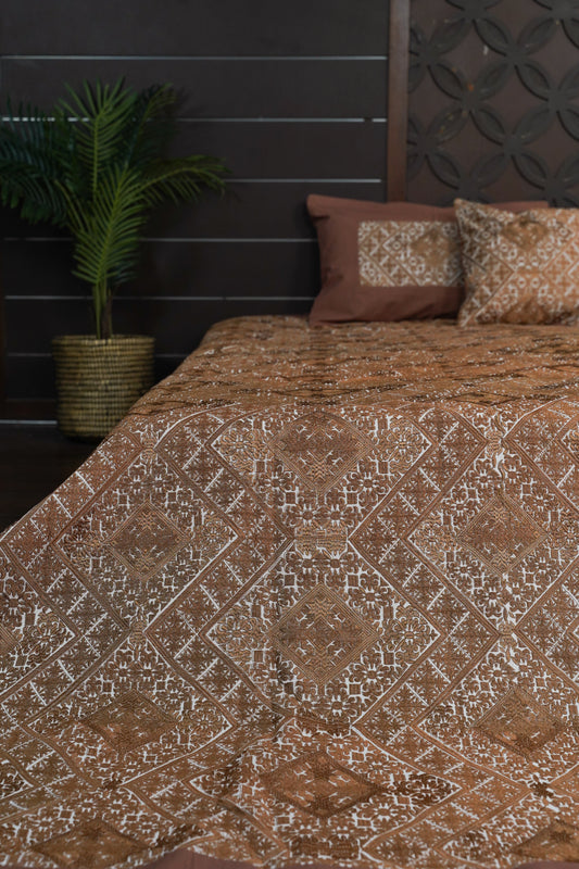 Swati silk embroidery bedcover - Brown
