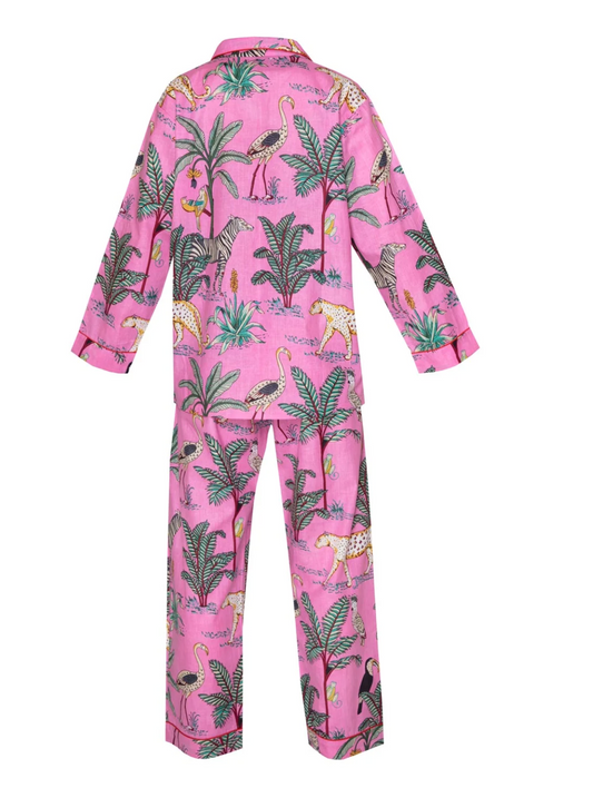 Cotton Jungle Print Pyjamas - Light Flamingo Pink