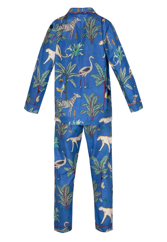 Cotton Jungle Print Pyjamas - Dark Blue