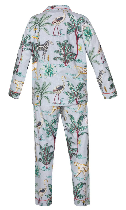 Cotton Jungle Print Pyjamas - Pale Sky Blue