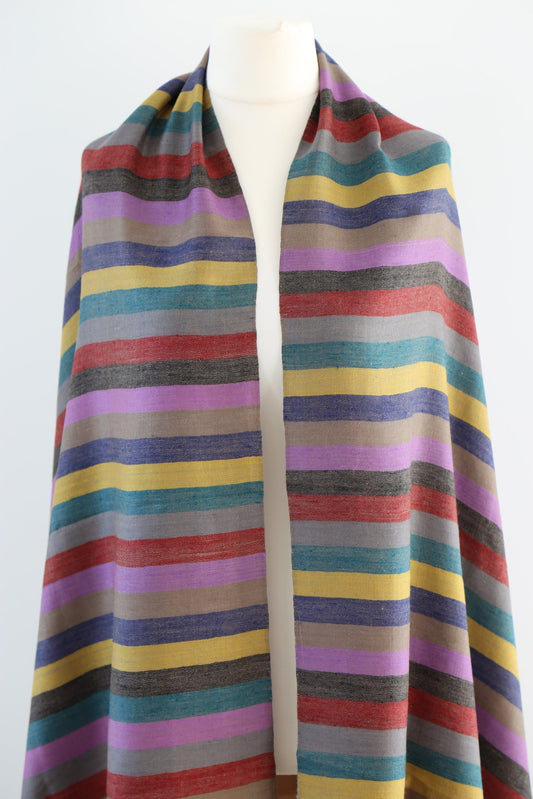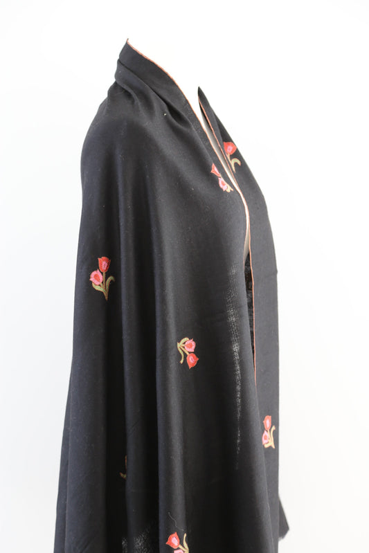 Natural Pashmina Shawl with Border Embroidery - Navy Blue