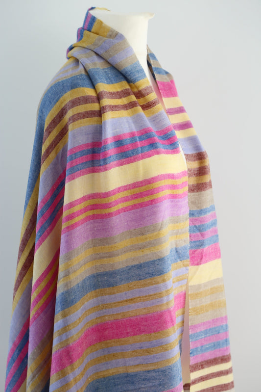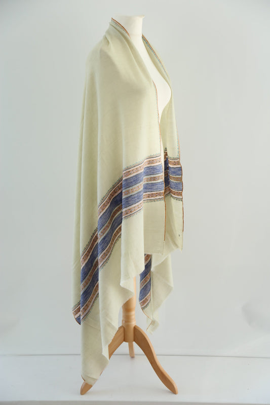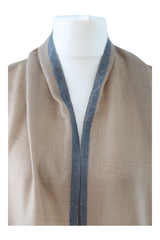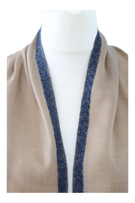 Natural Pashmina Shawl with Border Embroidery - Blue