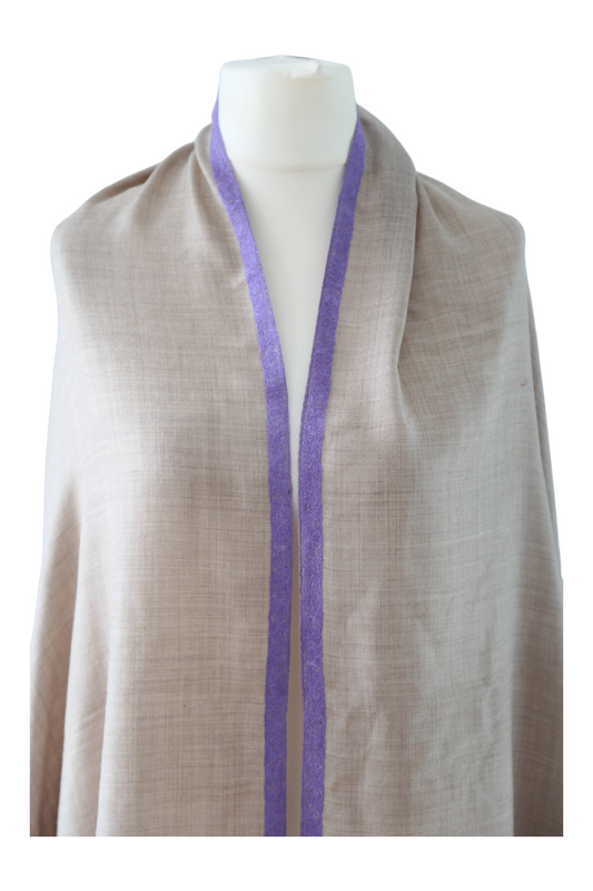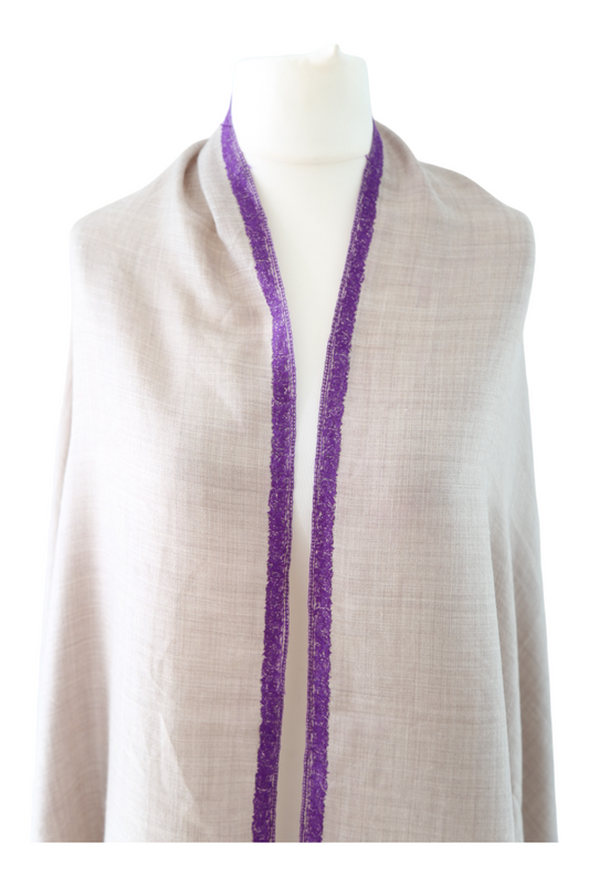 Natural Pashmina Shawl with Border Embroidery - Light Grey