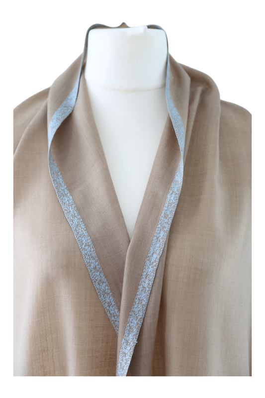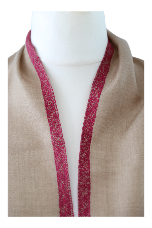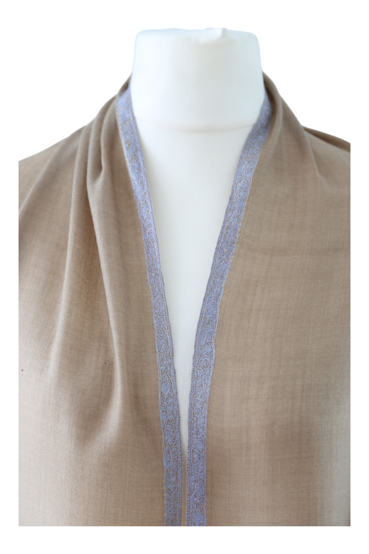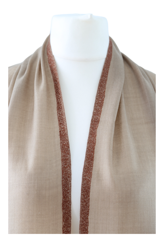 Natural Pashmina Shawl with Border Embroidery - Brown
