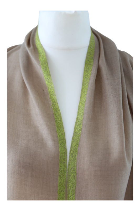 Natural Pashmina Shawls with Border Embroidery - Lime Green