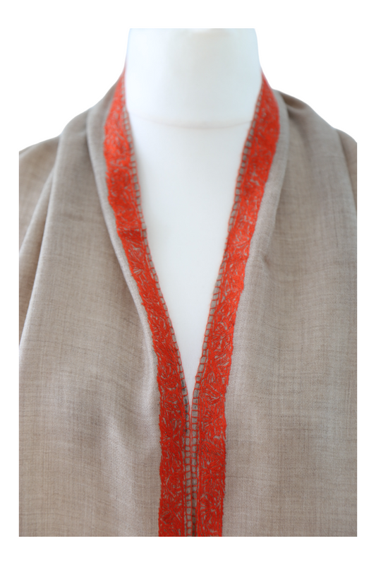 Natural Pashmina Shawls with Border Embroidery - Orange