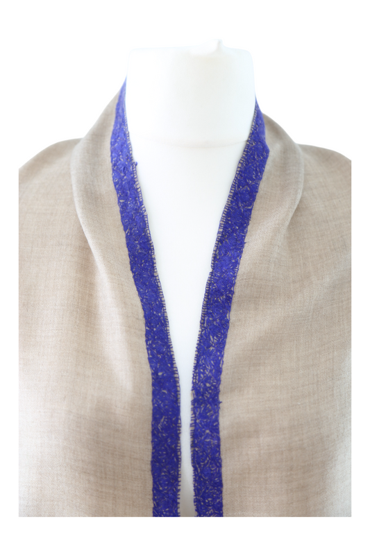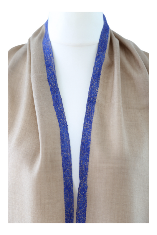 Natural Pashmina Shawls with Border Embroidery - Royal Blue