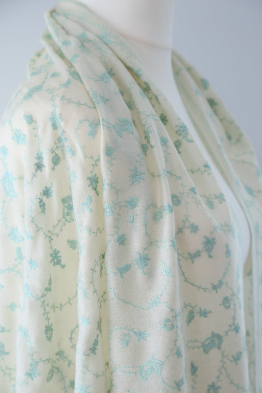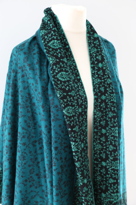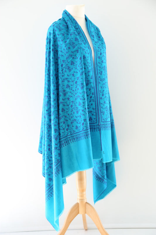 Sozni Jaalidaar Hand Embroidered Pashmina Shawl Peacock Blue