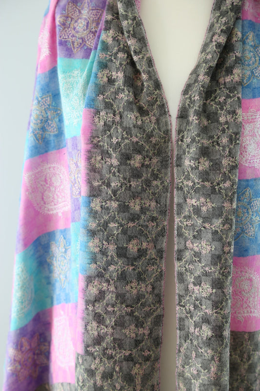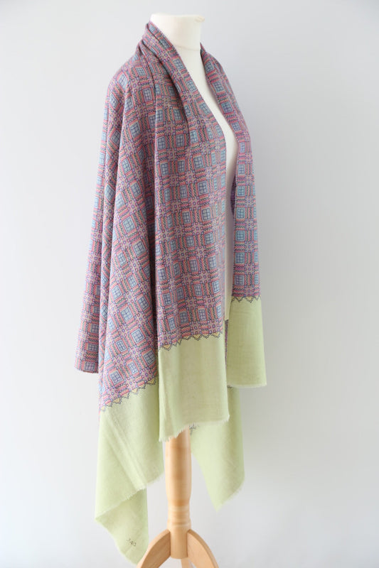 Kohinoor Check Hand Embroidered Pashmina Shawl