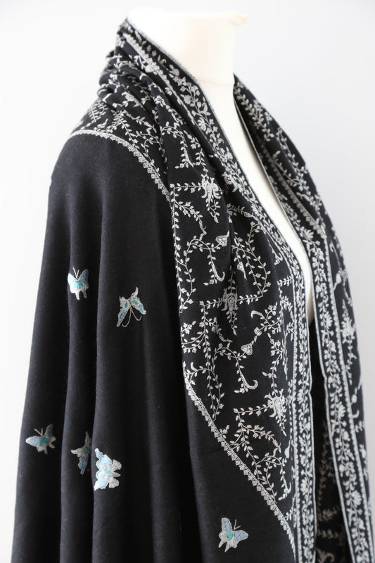 Sozni Hand Embroidered Cashmere Pashmina Black