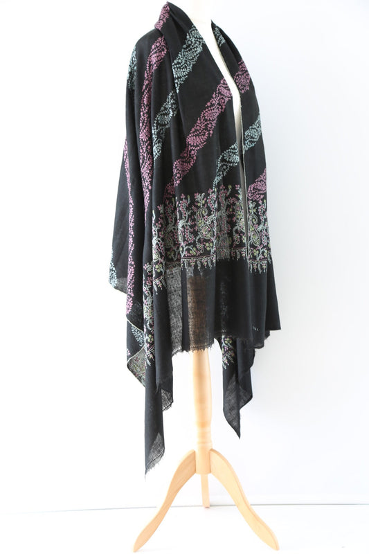Black Hand Embroidered Stripe Cashmere Pashmina