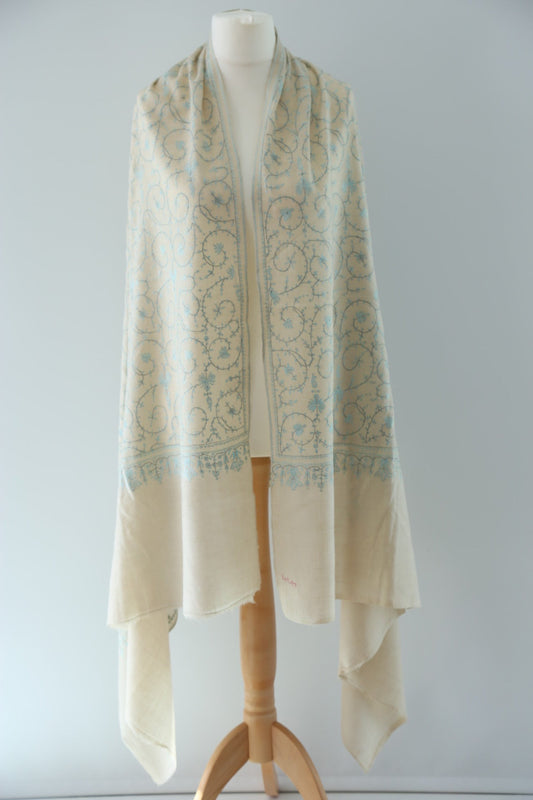Sozni Jaal Hand Embroidered Pashmina Blue Floral