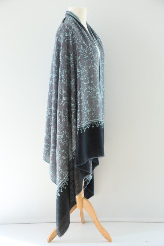 Two Tone Ombre Jaal Hand Embroidered Pashmina Shawl