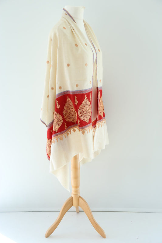 Ganderbal Hand Embroidered Wedding Pashmina Golden Zari