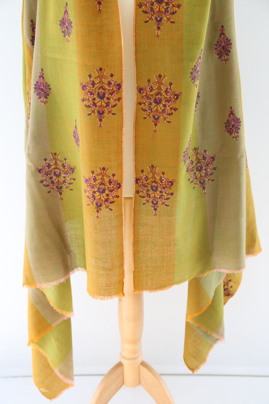 Sozni Jaal Hand Embroidered Pashmina Green Floral