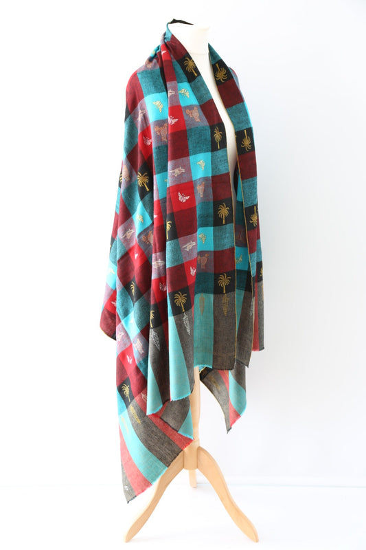 Multi-Colour Butterfly Palm Hand Embroidered Pashmina Shawl