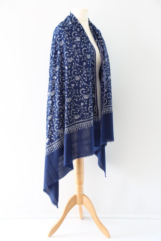 Hand Embroidered Cashmere Pashmina Wrap'Suzain Blue'