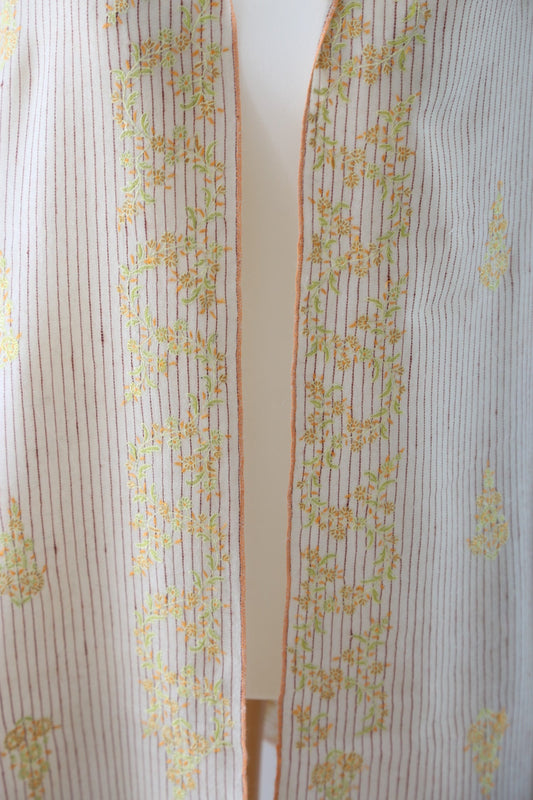 Meadow of Primitive Ivory Hand Embroidered Pashmina Shawl 'A walk in the Nature'