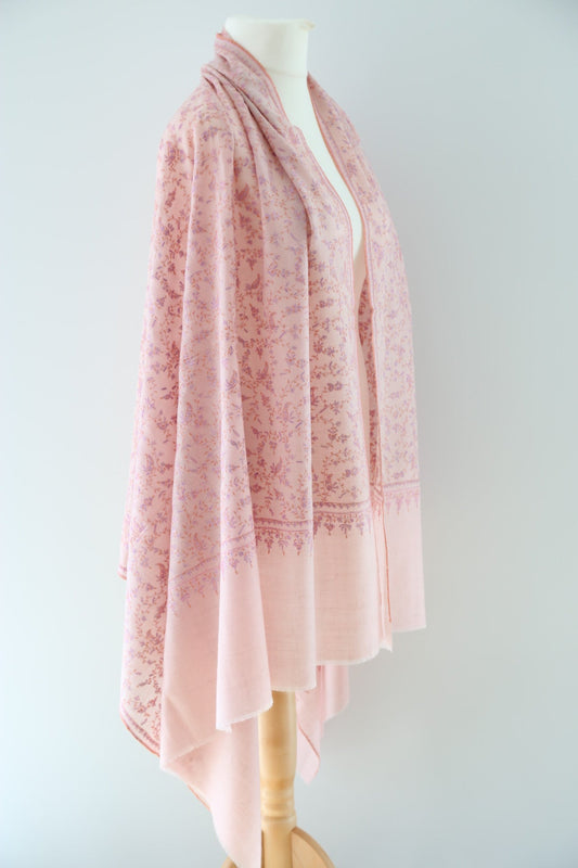 Hand Embroidered Cashmere Pashmina Baby Pink