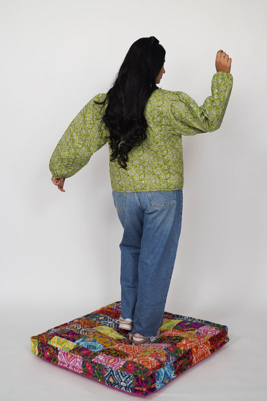 Oversized puffy sleeve quilted jacket - Pink Petals