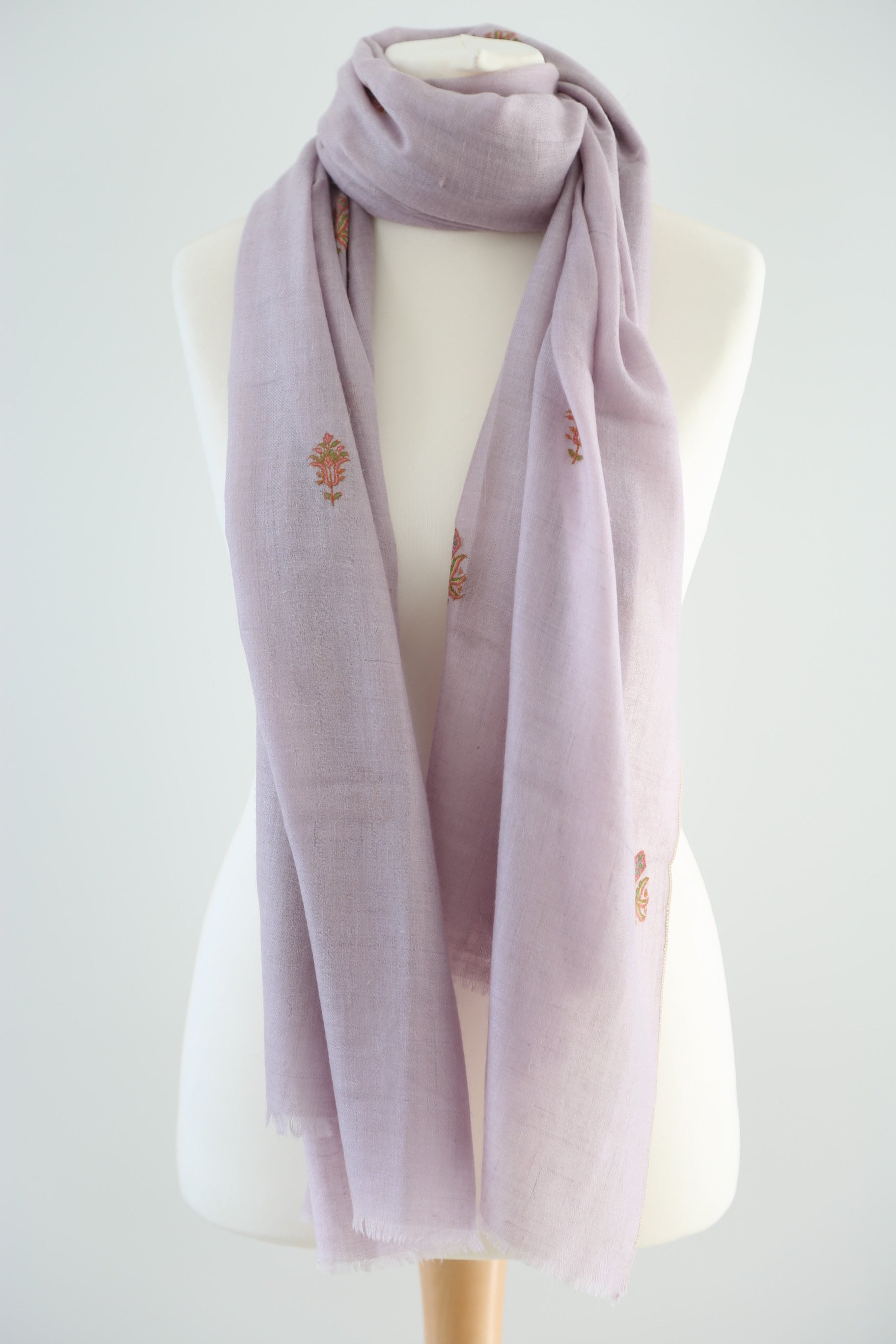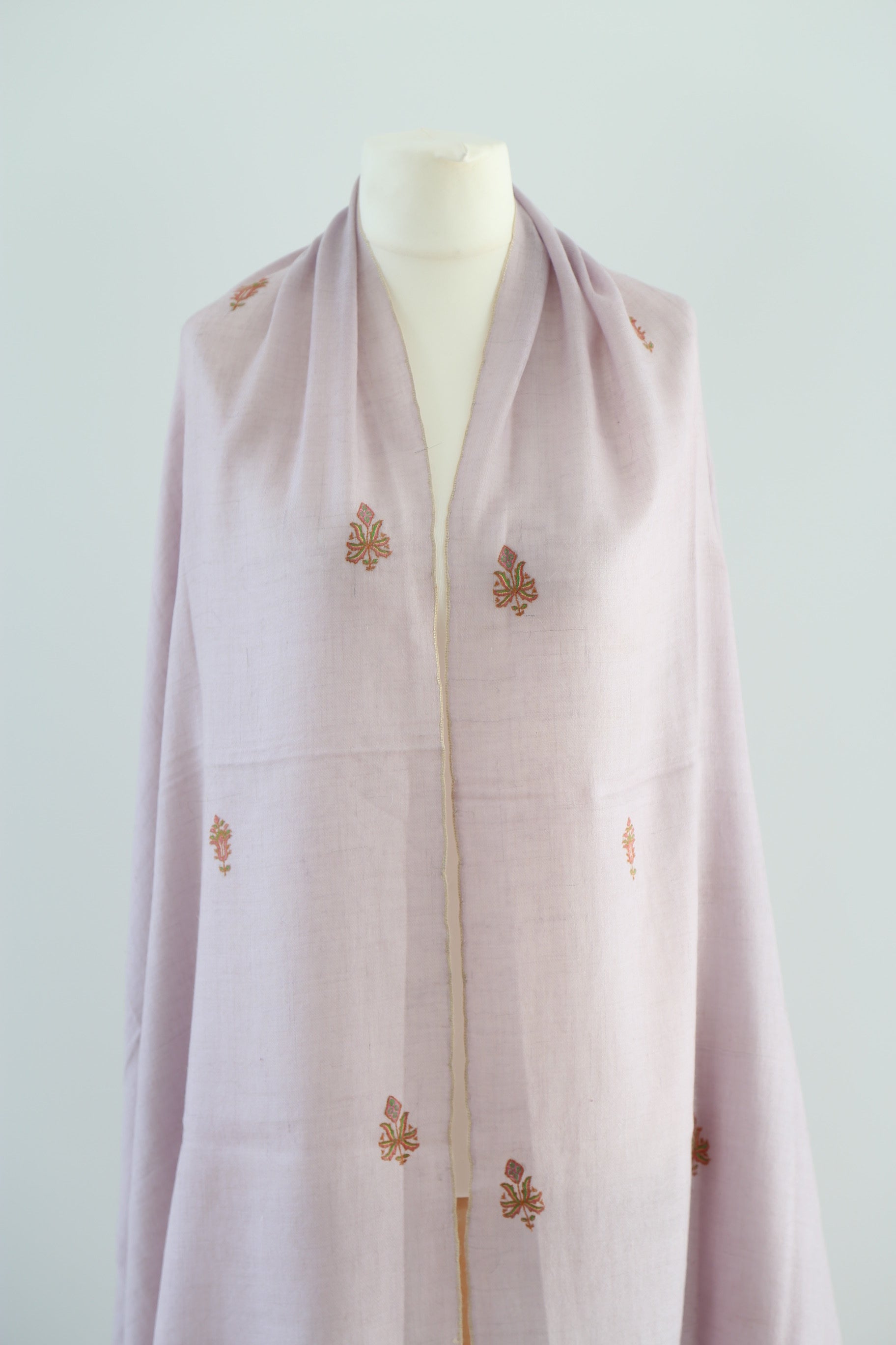 Light Pink Flower Motif Embroidery Pashmina Shawl